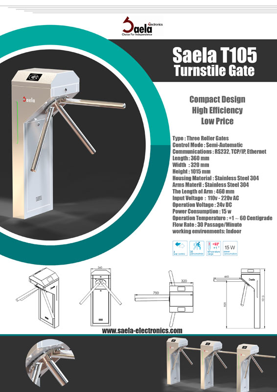 Saela T105 Turnstile gate offer dissuasive automated access control for sites with heavy use. The T105 Turnstile gate is equipped with motorize module. It efficiently guide high-volume throughput. It is widely used in factories, offices, colleges, library and etc.